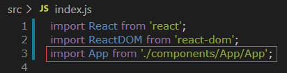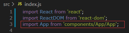 index.js 혹은 App.js등 각 파일에서 다른 파일들을 import할때 기본적으로 상대경로로 잡혀있는 것을 볼 수 있습니다. 나중에 프로젝트의 규모가 커지고 또 복잡해지면 상대경로에 의한 관리시 다른 파일들을 import할 때 굉장히 번거로워지기 때문에 절대경로로 세팅해주어야 합니다.