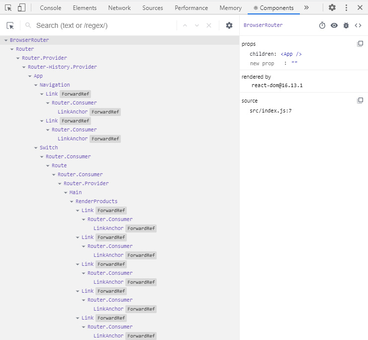 설치 후 브라우저를 껐다가 다시 실행시킵니다. 그러면 React로 제작된 사이트의 경우 개발자모드에서 새로운 탭항목들이 생긴 것을 확인할 수 있습니다.