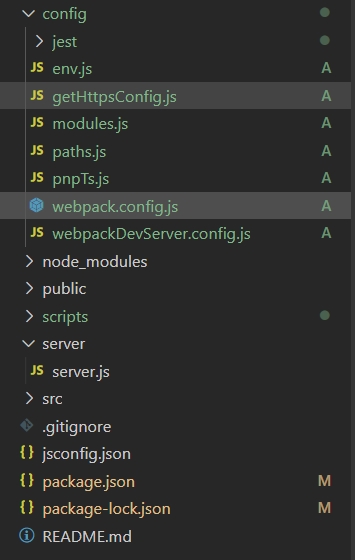 이 때 config폴더안에 'webpack.config.dev.js'이 들어있을 경우(React 이전 버전) 추가 세팅들이 필요할 수 있습니다. 저는 해당하지 않아서 추가 세팅은 pass했습니다.
